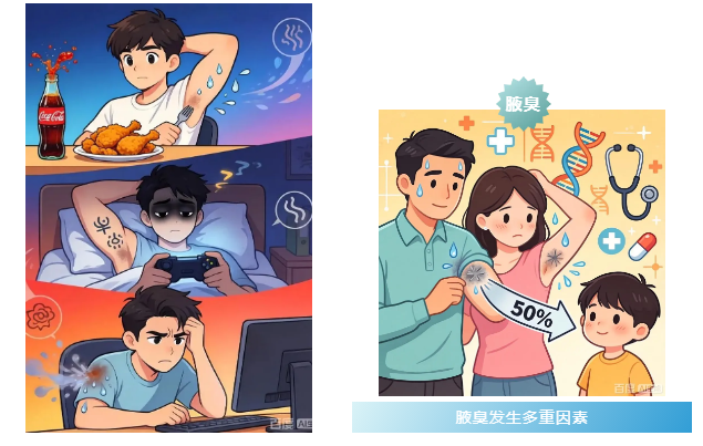 生活习惯:长期食用辛辣、油腻等刺激性食物,或者经常熬夜、精神压力大,可能会影响内分泌,间接导致腋臭症状加重。